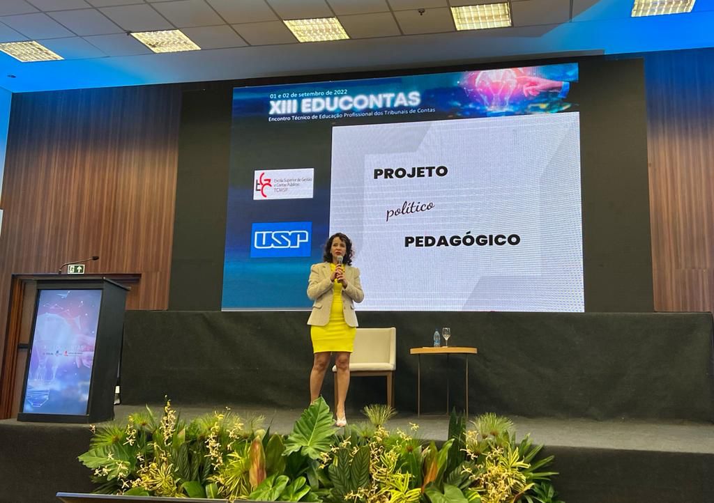 A diretora da ECG, professora- doutora Ana Carla Bliacheriene, apresentou, na tarde do dia 1 de setembro (quinta-feira), o painel PPP – Inovações e Modelos para cases de sucesso. De manhã, no mesmo dia, o chefe de gabinete da ECG, professor- doutor Luciano Vieira de Araújo,participou da abertura do Educontas ministrando a aula magna O desafio da inovação nas Escolas de Conta. Na mesma data, também à tarde, o professor Luciano Vieira de Araújo ministrou a palestra O uso do metaverso em atividades pedagógicas nas Escolas de Contas.