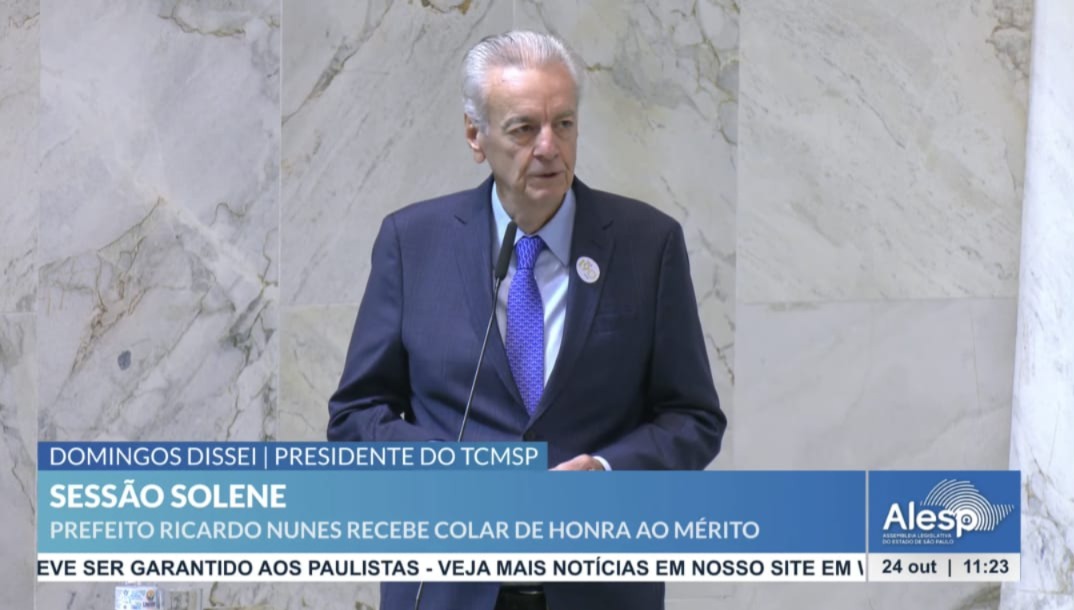 O Presidente do Tribunal de Contas do Município de São Paulo, Conselheiro Domingos Dissei, participou da Sessão Solene de Outorga do Colar de Honra ao Mérito Legislativo ao Prefeito Ricardo Nunes, realizada nesta sexta-feira (24), no Palácio 9 de Julho, Plenário Juscelino Kubitscheck, sede da Assembleia Legislativa do Estado de São Paulo (Alesp).